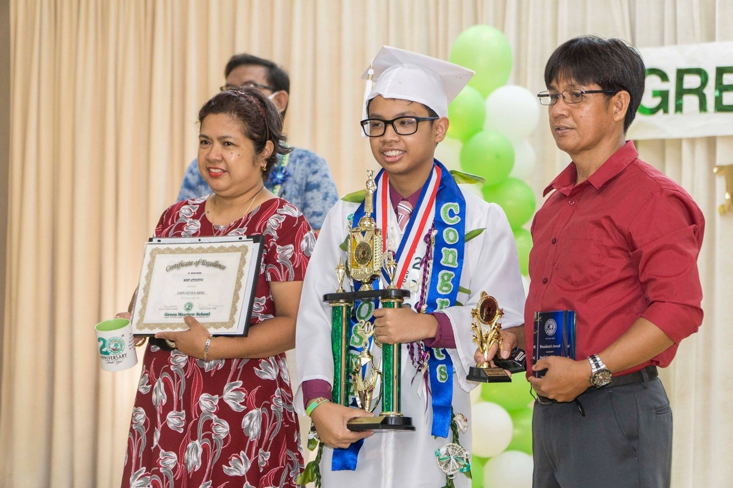 Eighth grade valedictorian Joseph Victor Jimenez with his parents.
