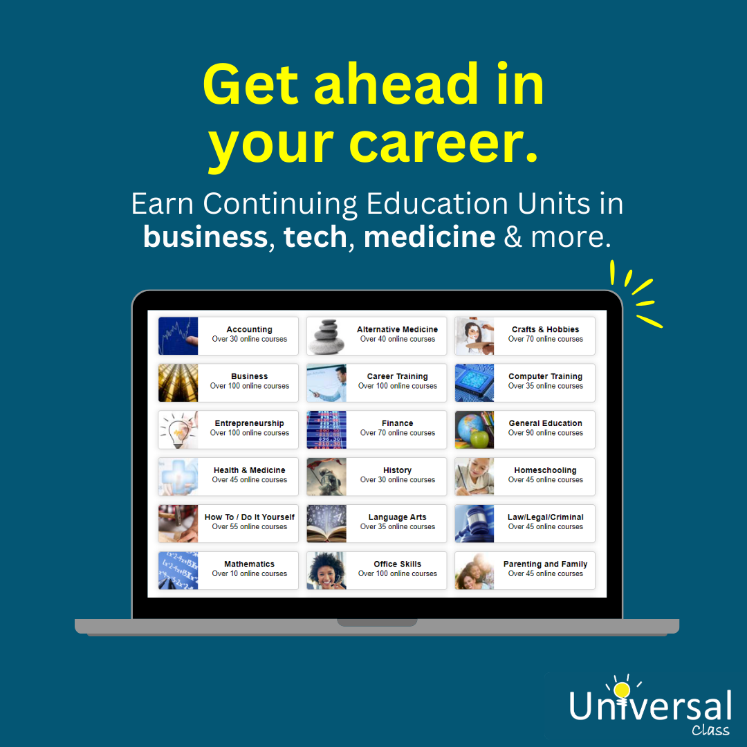 (JKPL) — Universal Class is available! Did you know that with your Joeten-Kiyu Public Library card, you have access to more than 600 free lifelong learning courses in over 30 subject areas, many of which offer continuing education units?