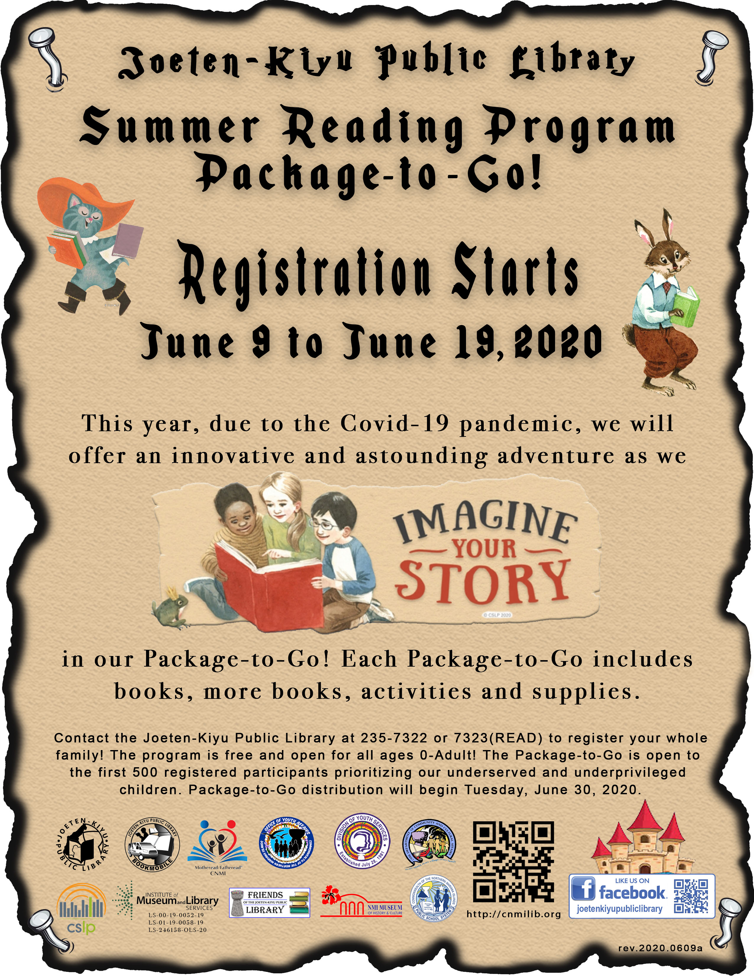 Registration is open from Tuesday, June 9, 2020 to Friday, June 19, 2020. Contact the Joeten-Kiyu Public Library at 235-7322 or 7323 (READ) to register your whole family!