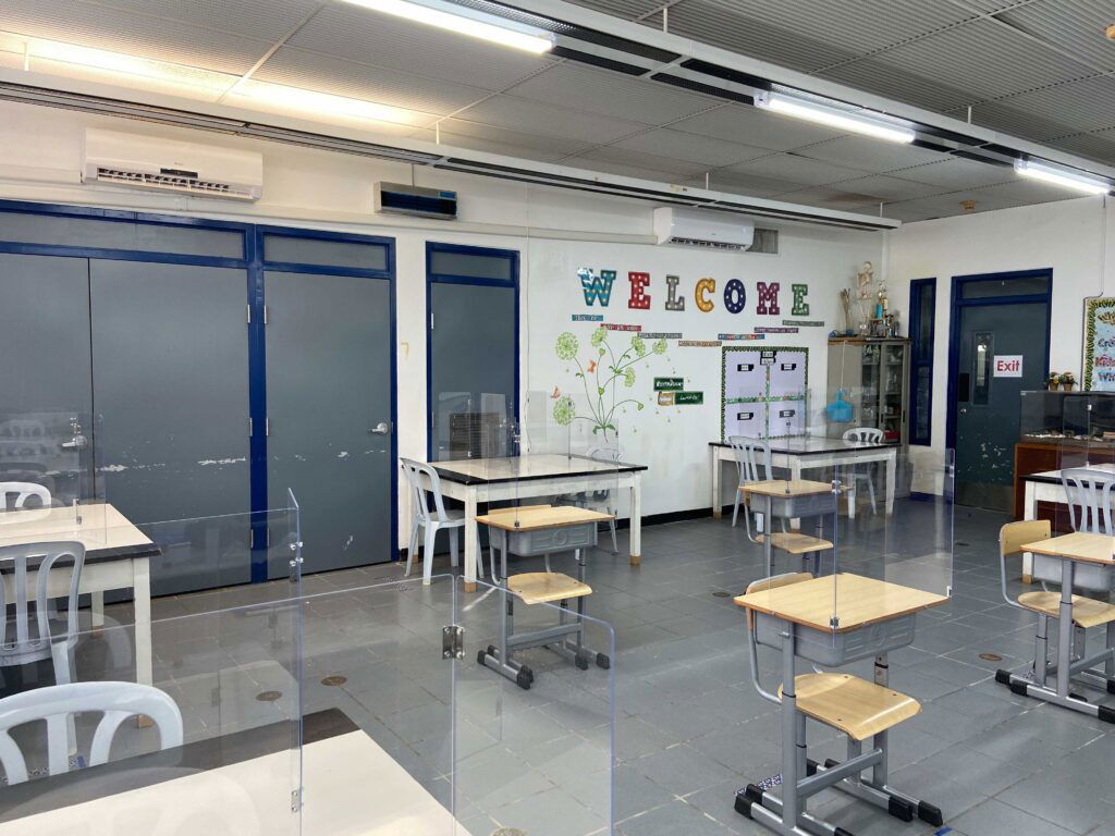 Floor markers are set all over campus to guide and ensure physical distancing of six feet. Where possible, student desks will have plexiglass shields to minimize airflow between students. Dividers have been installed in all offices and restrooms to provide an additional layer of protection. New washbasins have been added around the campus to promote hand-washing for all students, teachers, and parents. To sanitize the circulated air, Mount Carmel School contracted Ampac Ltd., to install a UVC lighting fixture in each classroom. These fixtures are safely positioned to avoid any contact with students, teachers, and parents.