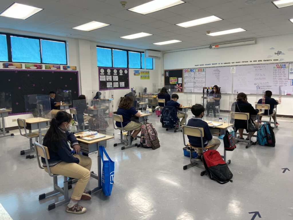 To ensure students, employees, and community members are safe on campus, MCS invested in many resources to reconfigure the school appropriately. Throughout the campus are place markers spread out every six feet. Areas like the playground and canteen have been shut down to avoid a congregation of students. Throughout the campus are new washbasins to promote good sanitation practices. In each classroom, desks are spread out every six feet and where possible, plexiglass cubicles are attached to each desk. To ensure the circulated air in each classroom is sanitized, MCS also invested in a UVC lighting fixture in each classroom. Lastly, Mount Carmel School revised its handbook to include new policies and procedures regarding the Covid-19 virus. Many of the school’s procedures are guided by the guidelines from the Governor’s Covid-19 Task Force and were adopted in Mount Carmel School’s policies and procedures.