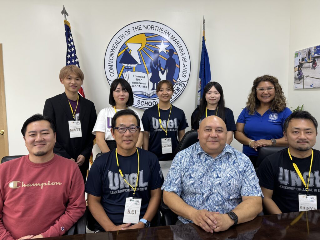 A select group from Japan’s Saipan Kyushoku Project visited Saipan recently to work with the Public School System on a project that encourages healthy living, with a primary focus on food education and behavioral practices. On Oct. 21-22, members of the Saipan Kyushoku Project, which is part of the University Network for Global Leadership Development, conducted an on-site visit, observation, and interviews with several public schools. The visiting group consisted of project manager Shinya Murata, supervisor Keiji Hata, Ehime University student and team leader Haruna Kyogoku, Ehime University student and sub-leader Arisa Yatsuzuka, Ehime University student Kasuke Matsuoka, and Okayama University of Science student Miyu Kitagawa. On Oct. 22, they met with Commissioner of Education Dr. Lawrence F. Camacho to discuss and present their findings. Also in photo are PSS Child Nutrition Program Nutritionist Erin Camacho and Dandan Middle School Vice Principal Reo Arriola.