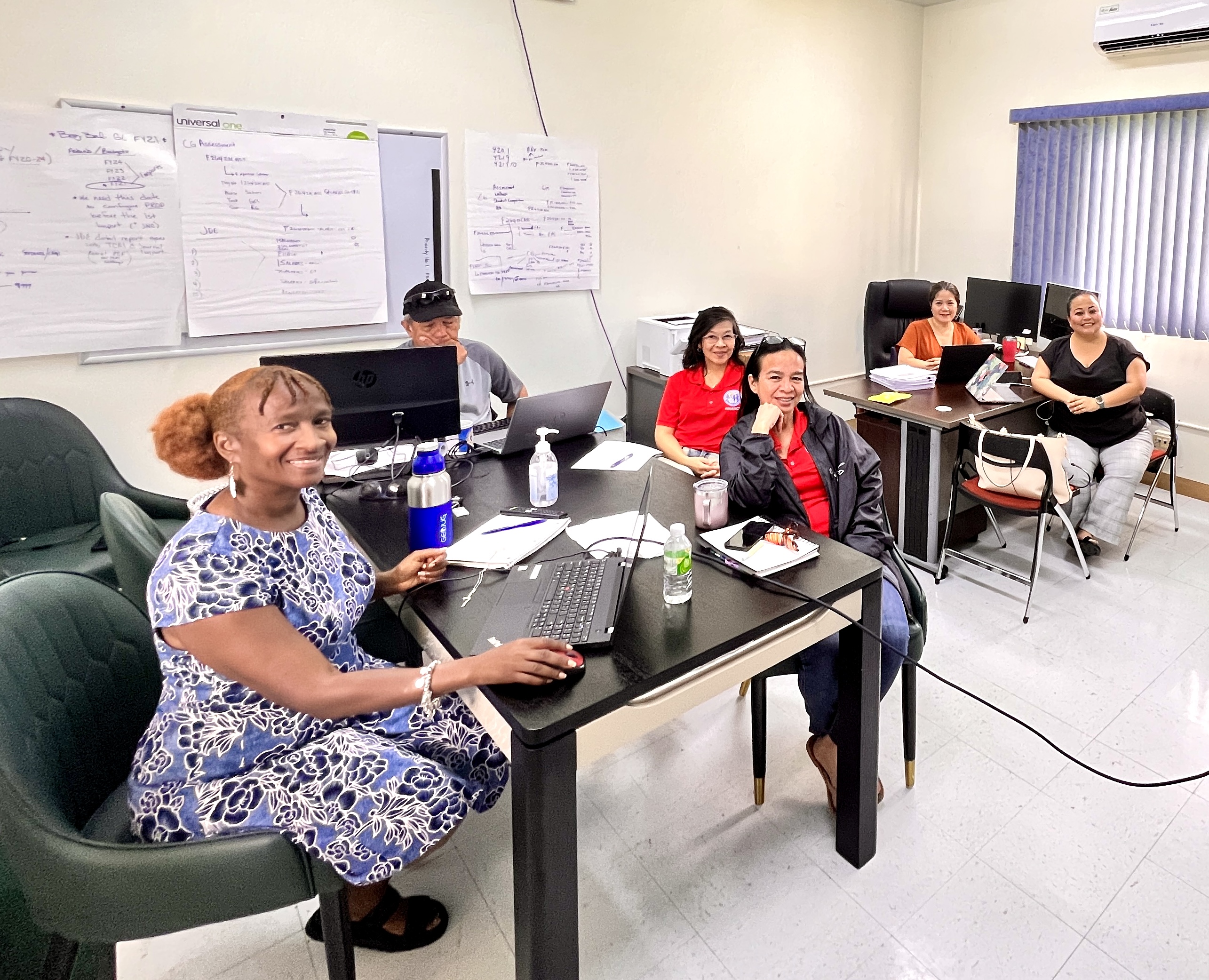 Veronica Brundage, implementation consultant of Tyler Technologies Inc., left, conducts a training session for Finance and Human Resources Office personnel of the Public School System. Also in photo are Naydine Aguon and Catherine Packwood, payroll staff; Antonio Reyes, consultant; Finance and Budget Director Arlene Lizama, and Human Resources Officer Lucretia Deleon Guerrero.