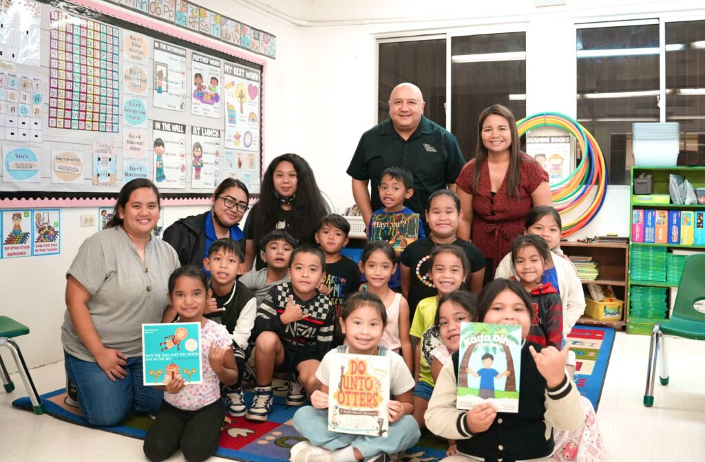 During a State Celebrity Read-A-Loud school activity on Tuesday morning, Principal Raena Bermudes Camacho of Gregorio T. Camacho Elementary School introduced Commissioner of Education Dr. Lawrence F. Camacho to teacher Jace Pineda’s first-grade homeroom class. Camacho read the book “Kada Dia” or “Every Day,” written by Rose Sharon Taimanao Jones, a Chamorro-Carolinian and Heritage Studies educator from Chacha Oceanview Middle School, and her mother, Carmen Songsong Taimanao. The read-a-loud event is a part of the Chamorro-Carolinian Cultural Heritage Month celebration of the Public School System this month.