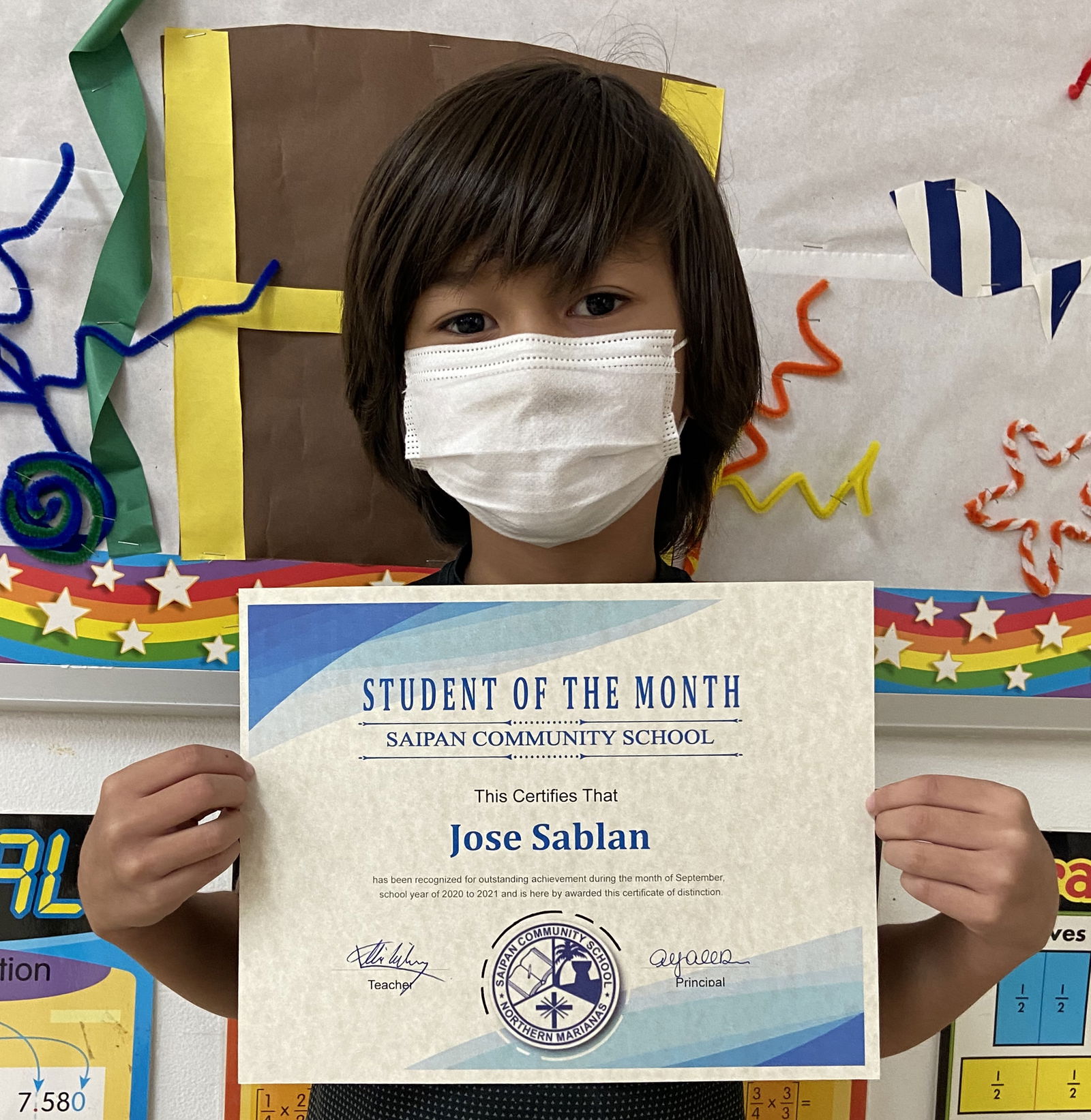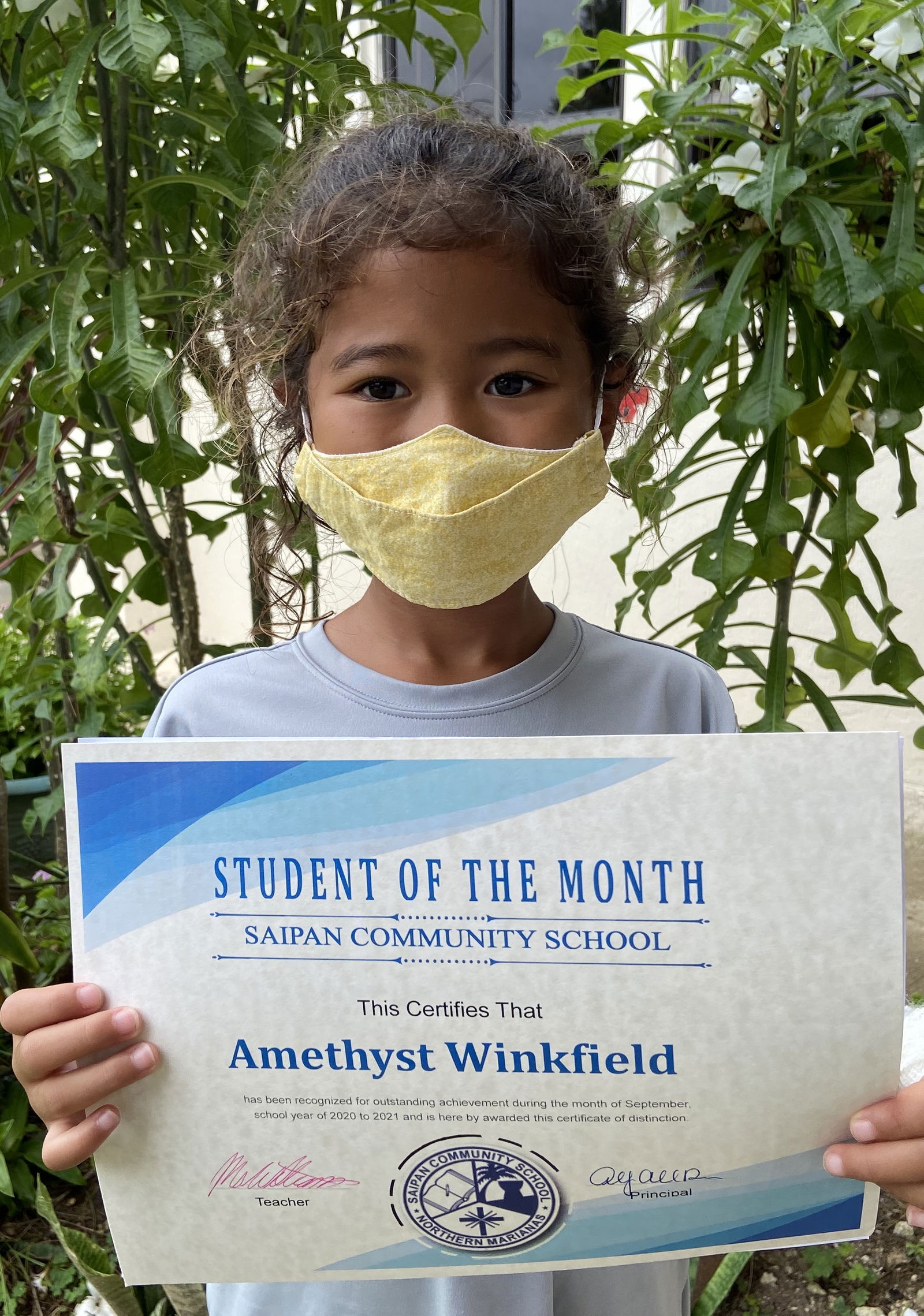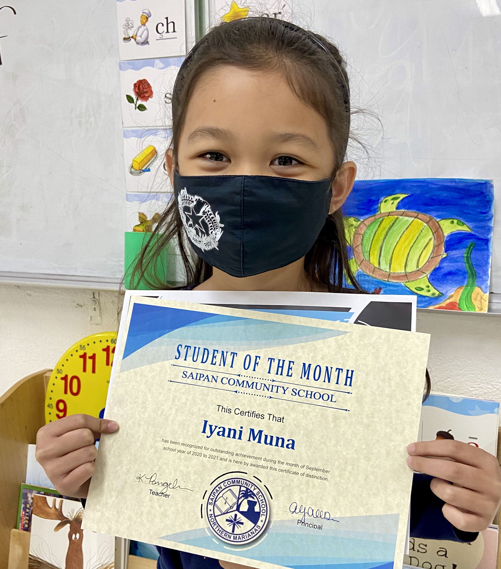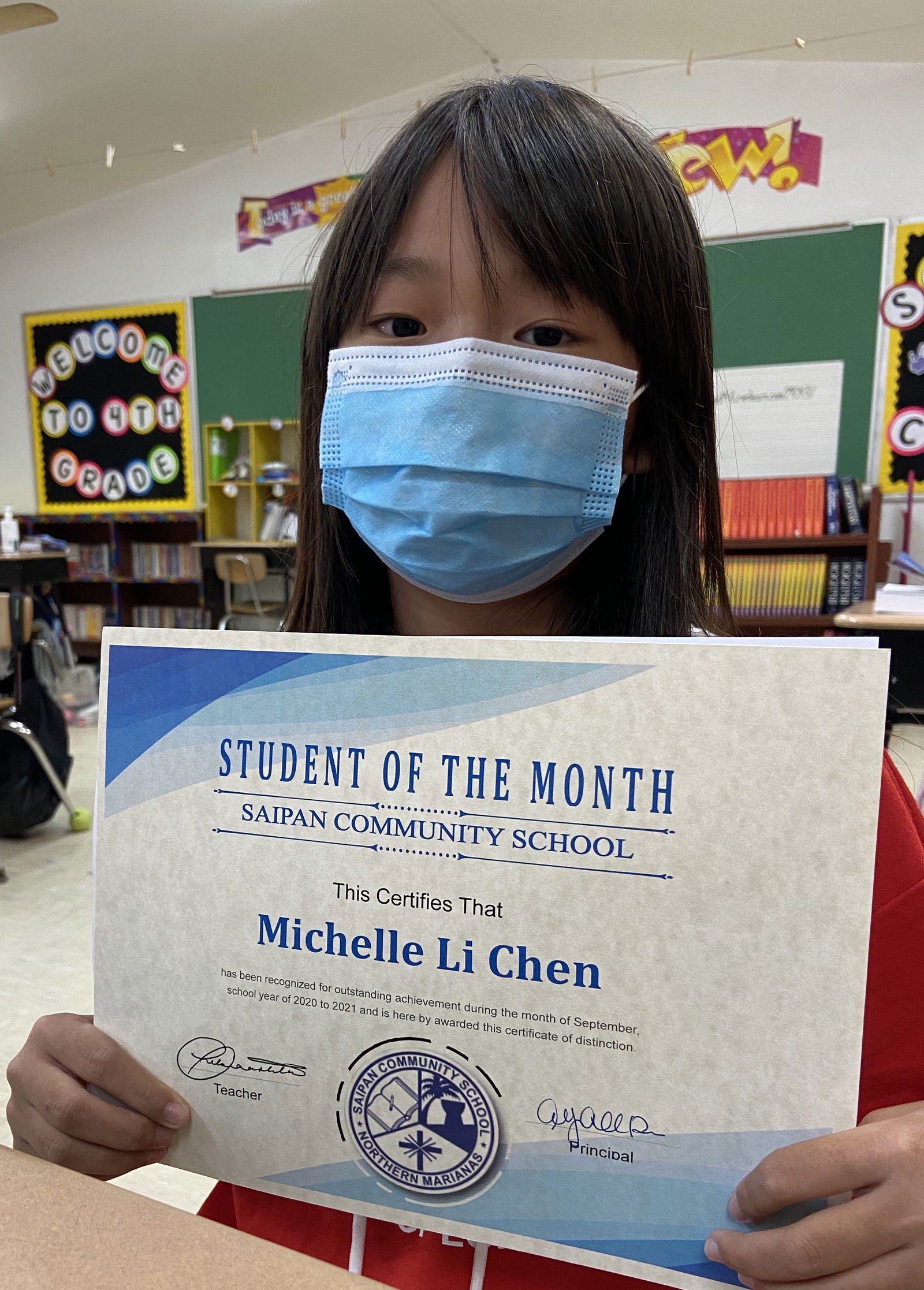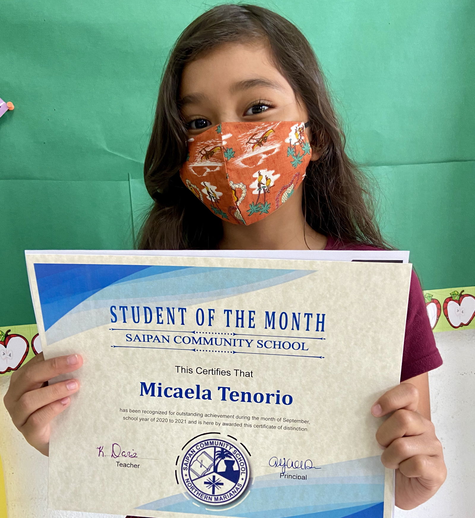 Micaela is a positive role model who was selected from among her peers citing the following: she always listens and pays attention, she follows Covid-19 guidelines at school, she controls her behavior and works hard, and she always finishes her classwork and homework.