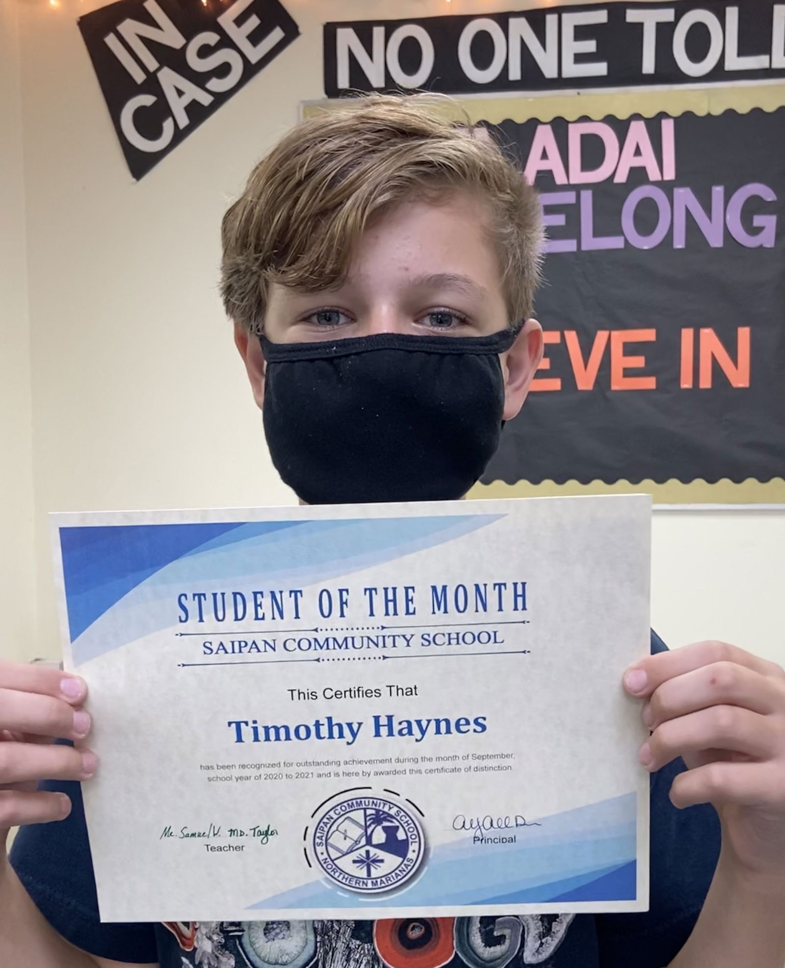 Timothy is working very diligently on all of his assignments and goes above and beyond, to track his assignments and ensure he doesn’t miss any of his work. He is always the first to step up to help his classmates with technology issues in the classroom, and has proven to be a responsible leader.
