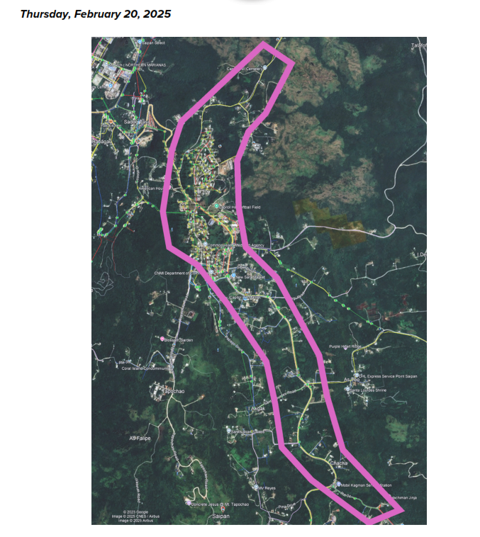 (Commonwealth Utilities Corp.) — There will be a scheduled water service interruption on Thursday, Feb. 20, 2025, from 8 a.m. to 4 p.m.