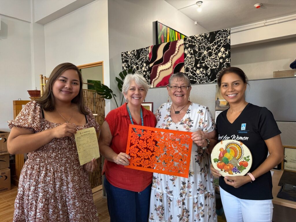 On Wednesday, Nov. 27, 2024, the Soroptimist International – NMI Chapter made their annual Thanksgiving donation to Guma Esperansa, an emergency shelter for those fleeing from domestic violence and needing a safe shelter. Guma Esperansa is operated by its parent agency, Karidat. SINMI has been donating Thanksgiving meals to the shelter for the past t10 years and this has been made possible by past and present members of SINMI. Photo shows, from left, SINMI member, Kimberly Camacho, Karidat Executive Director Lauri Ogumoro, SINMI member and Past President Maureen Sebangiol and SINMI Treasurer Merle Bryd.