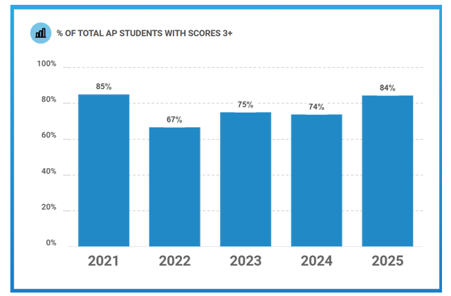 (SIS) — Saipan International School proudly announces that 84% of all students attempting Advanced Placement or AP exams at SIS in 2025 received scores of 3 or higher, up 10% from 2024. This demonstrates strong performance on some of the most challenging academic assessments available to high school students.