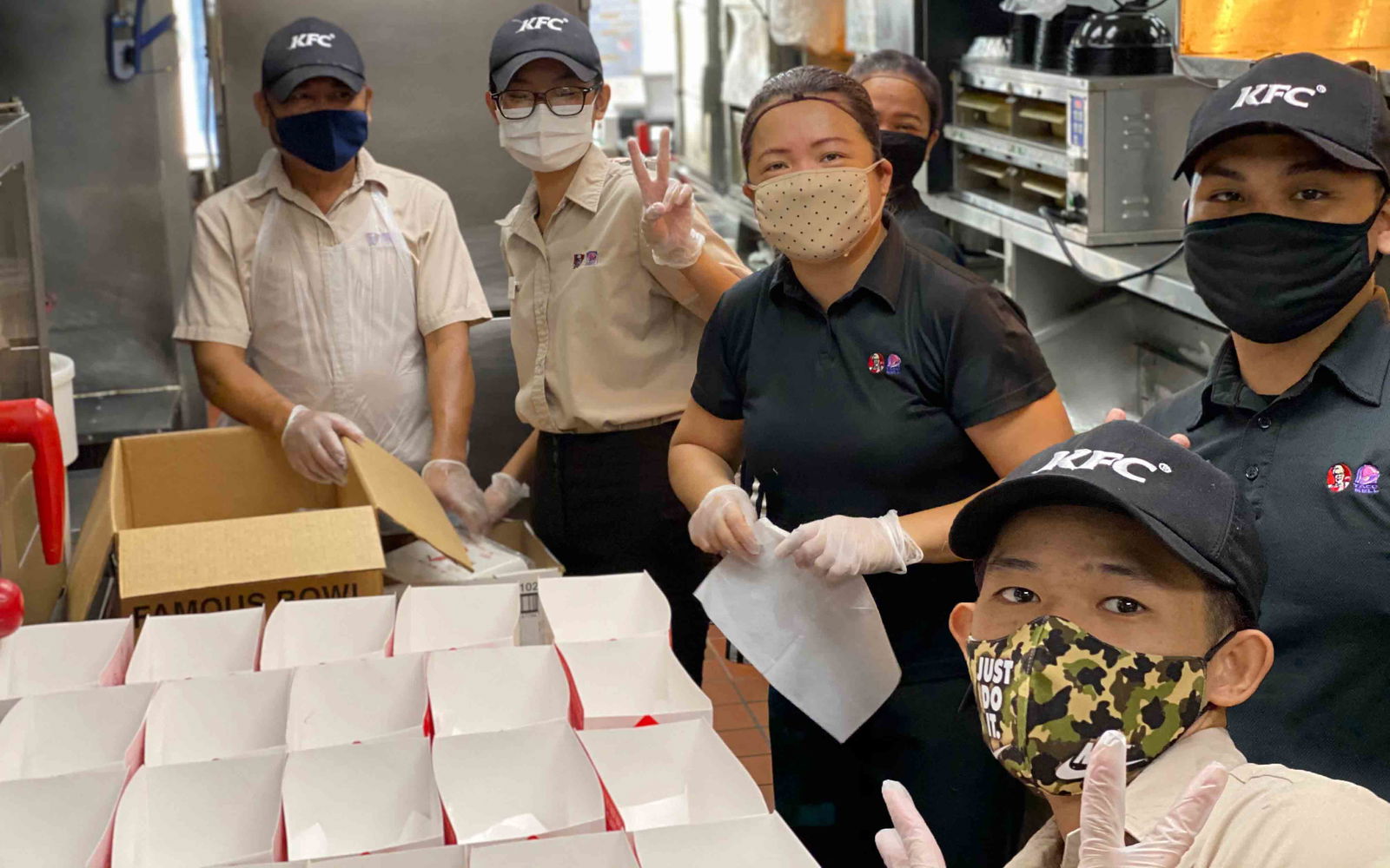 KFC Saipan Manager Yole P. Aldan and KFC crew members prepare the chicken meals for the island’s front liners. Contributed photo
