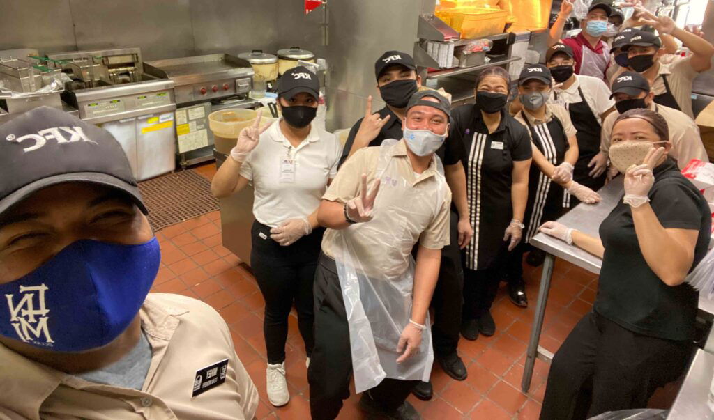 KFC Saipan Manager Yole P. Aldan and crew members pose for a photo in the kitchen. Contributed photo