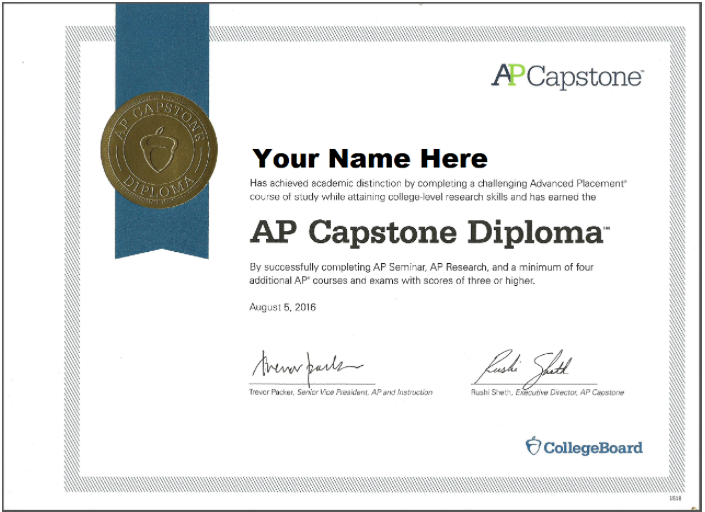 To receive the AP Capstone Diploma, students must earn scores of 3 or higher in AP Seminar, AP Research, and on four additional AP Exams of their choice. To receive the AP Seminar and Research Certificate, students must earn scores of 3 or higher in AP Seminar and AP Research. Student participation in the AP Capstone program has been steadily increasing, with Over 100,000 students in over 2,500 schools worldwide taking part during the 2023-24 academic year. Approximately 21,000 students earned the AP Capstone Diploma, and 11,100 students earned the AP Seminar and Research Certificate.