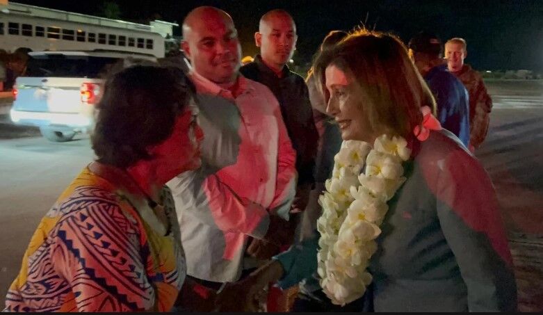 Gov. Lou Leon Guerrero and Lt. Gov. Josh Tenorio welcome U.S. House Speaker Nancy Pelosi to Guam. Speaker Pelosi touched down Sunday night at Andersen Air Force Base. She is leading a congressional delegation through Asia.