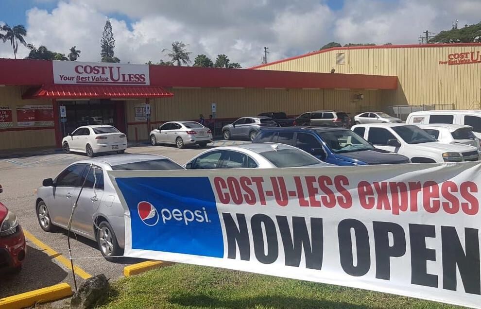 A banner welcomes customers to Cost-U-Less Express along Route 4 in Chalan Pago on Sunday, Oct. 28, 2018.