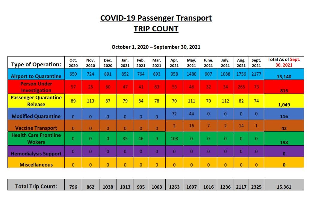 As of Sept. 30, 2021, COTA had transported 23,850 passengers under the CNMI Governor’s Covid-19 Task Force since March 2020.