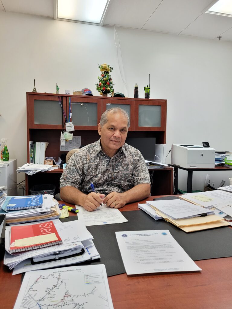 Commonwealth Utilities Corporation Executive Director Gary Camacho poses for a photo in his office.