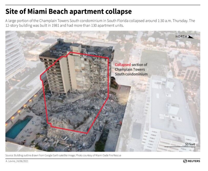 Officials in Surfside, the shore town near Miami where the building stood along the beach, said hope remained that rescuers would yet discover survivors in air pockets that may have formed in the pancaked debris.