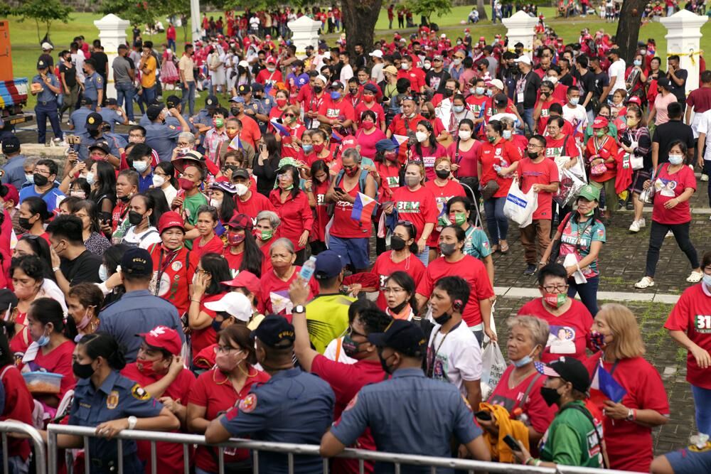 Supporters of President-elect Ferdinand “Bongbong” Marcos Jr. gather to wait for the inauguration ceremony Thursday, June 30, 2022 in Manila. Marcos will be sworn in as the country’s 17th president.
