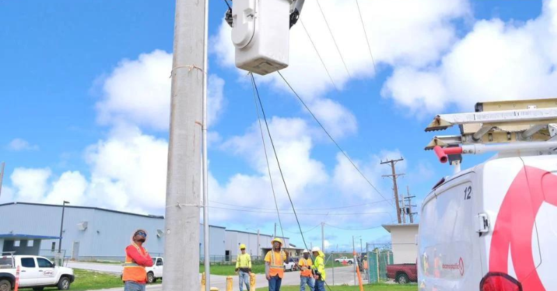 A California Pacific Technical Services and Docomo Pacific Guam crew works on a project in Tiyan on June 8, 2023.