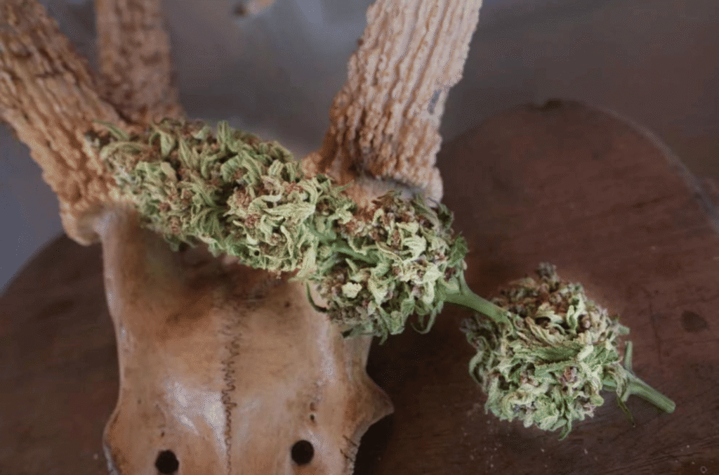 A cannabis flower is pictured in Inalåhan in October 2021.