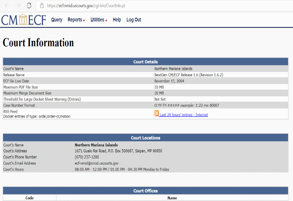 THE District Court for the NMI has upgraded its Case Management/Electronic Case Filing or CM/ECF software.