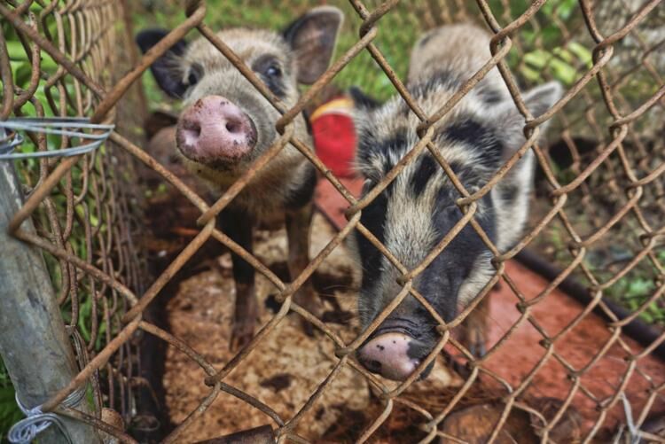 Wild pigs, or babui halom tano, caged in Talo'fo'fo'.