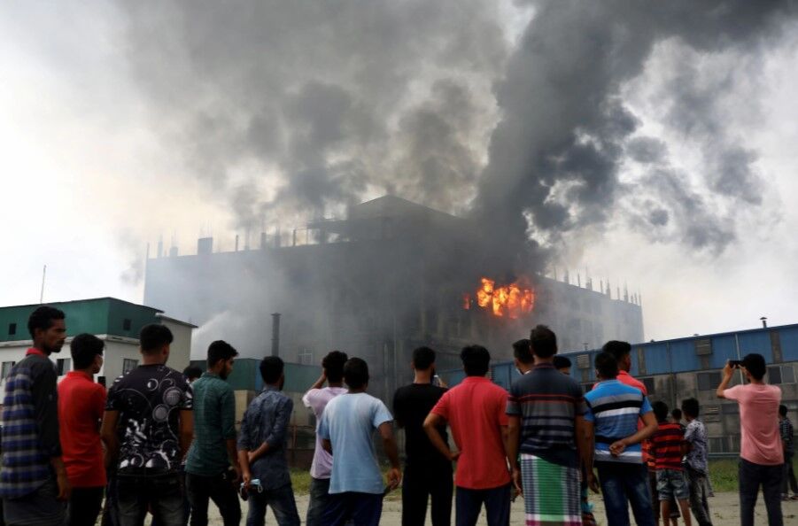 The fire started late Thursday on the ground floor of a six-story factory building in Narayanganj, southeast of Dhaka, and was still raging Friday evening as firefighters scrambled to control it.