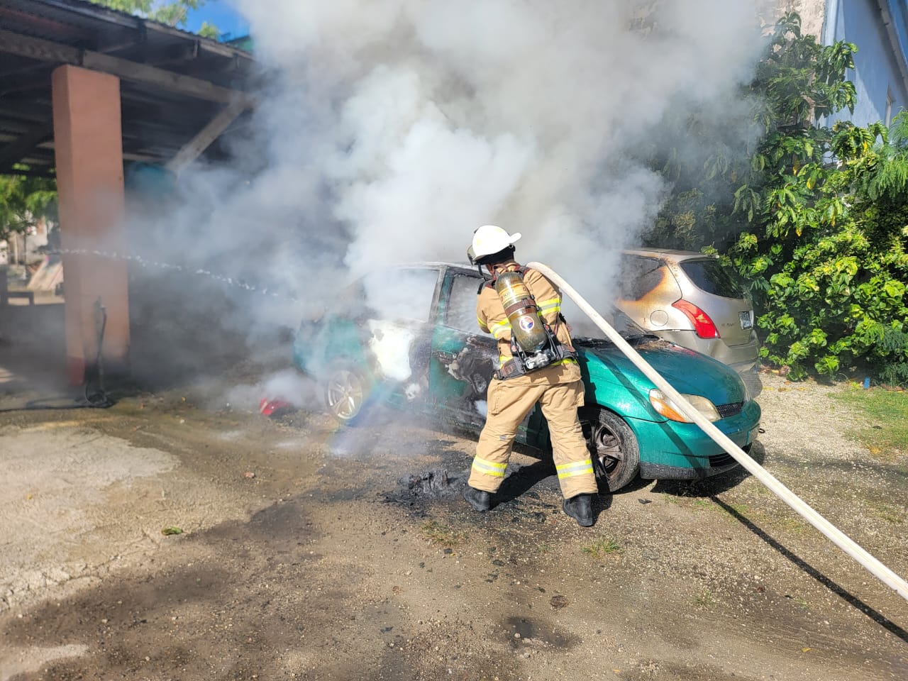 Firefighters respond to vehicle blaze in Chalan Laulau