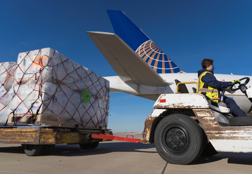 A shipment of Pfizer's coronavirus disease vaccines is unloaded from a United Airlines cargo-only flight from Brussels to O'Hare International Airport in Chicago, Illinois on Dec. 2, 2020.United Airlines/Handout via Reuters