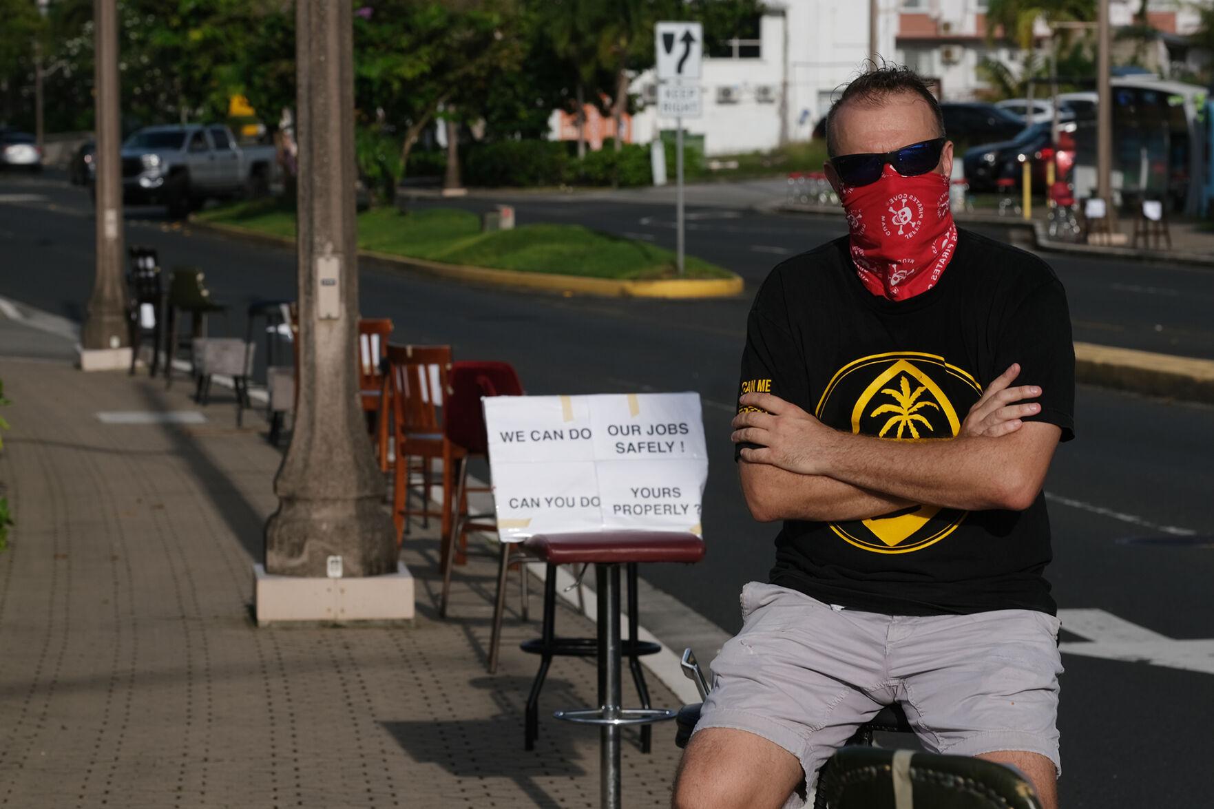 Thomas Peinhopf, the owner of two bars, Livehouse and The Shady Lady, protests the closure of Guam's bar businesses on Dec. 1, 2020 in Tumon.Photo by Norman M. Taruc/The Guam Daily Post