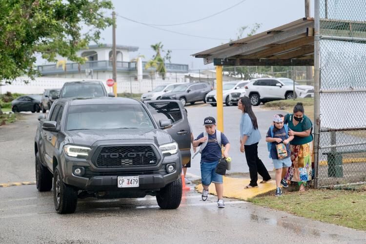 Families pick up their children from their first day of school at Agana Heights Elementary School on Wednesday, Aug. 23, 2023. All schools will be inspected and passed by April 2024, according to Guam Department of Education Superintendent Kenneth Swanson.