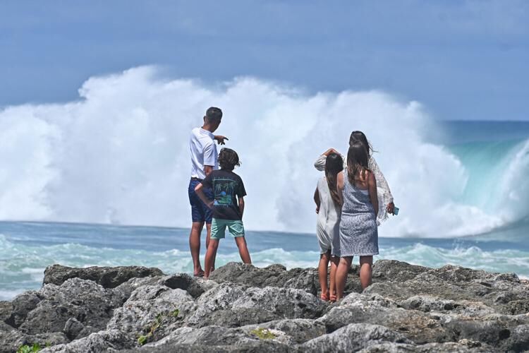 Large waves break near the Hagåtña boat basin entrance Sunday Oct. 15, 2023.