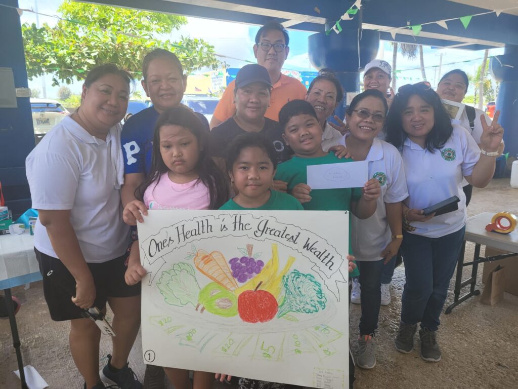 THE winners of Green Meadow School’s poster-making contest, third graders Johana Sarabia, Emmjie Escano and Kaiser Maganti, pose for a photo with their teachers, parents, GMS President Glenn Songcuan, center back row, and principal Milagros Songcuan, third right, during the GMS 20th Foundation Day celebration at Kilili Beach on June 4, 2022.