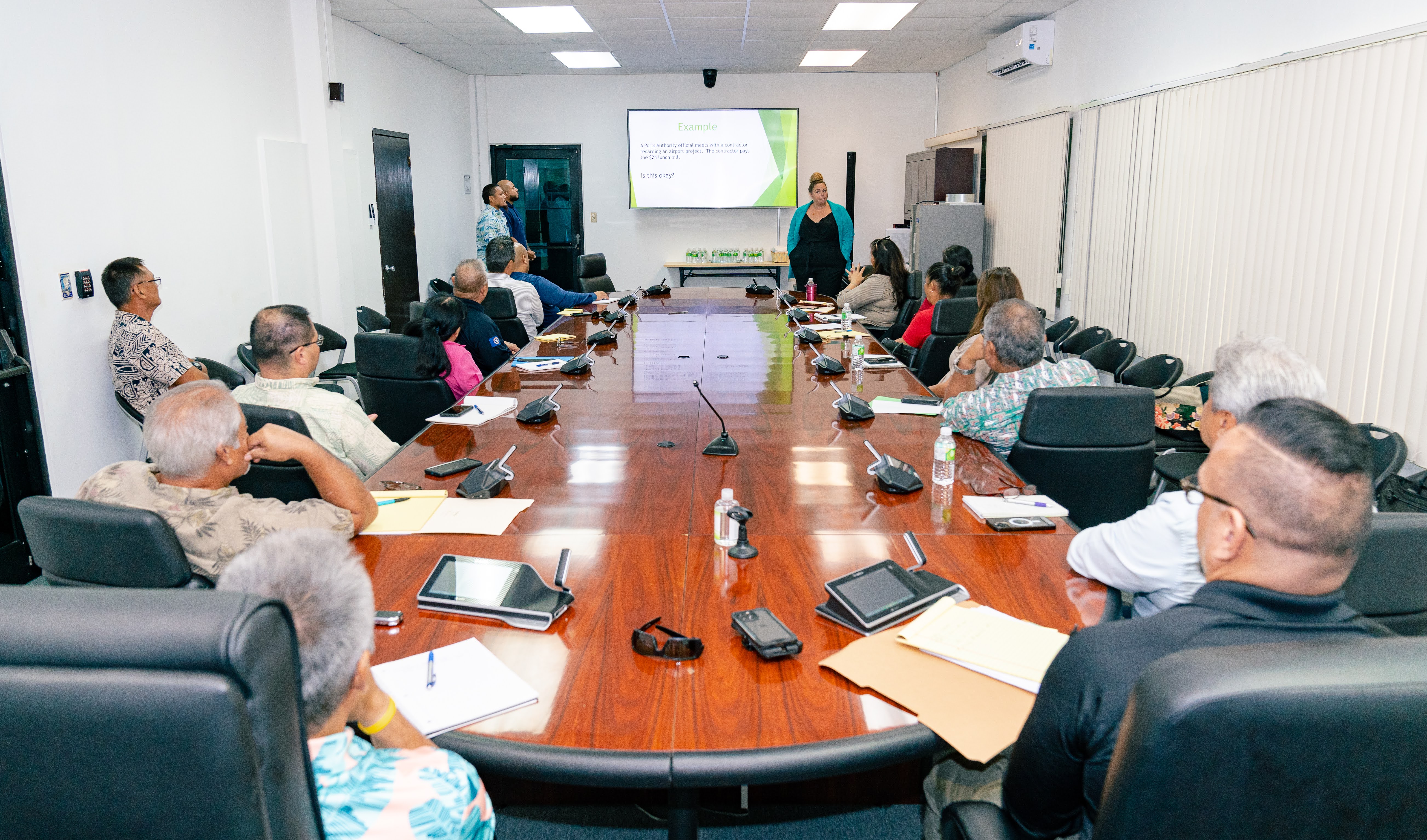 On Tuesday morning, newly appointed cabinet members and other officials participated in a training on the Government Ethics Act. The training was facilitated by Ashley Kost of the Office of the Public Auditor. The training included discussion on prohibited political activities, gifts and gratuities, complaints and ethics violations, and conflicts of interest. Also discussed were restrictions and internal policies that would supplement and improve government employee ethics and promote the best interests of the Commonwealth. OPA is an independent agency of the Commonwealth government tasked with the responsibility to audit the receipt, possession, and disbursement of public funds and to perform such other duties as required by law.