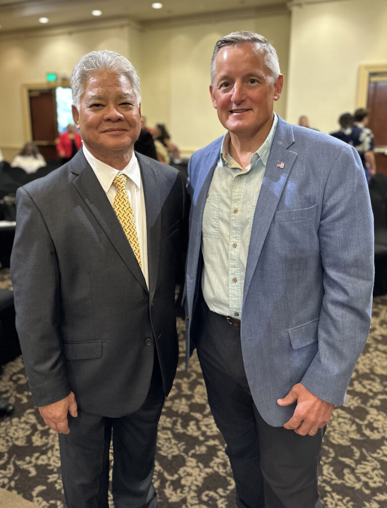 CNMI Gov. Arnold I. Palacios and the chairman of the U.S. House Committee on Natural Resources, U.S. Congressman Bruce Westerman, R-Ar., pose for a photo prior to a field hearing conducted by the committee on Guam, Thursday, Aug. 23. The hearing examined the importance of the U.S. territories and the Freely Associated States to the United States’ ability to counter the People’s Republic of China’s “malign influence” and maintain the United States’ strategic interests in the region.