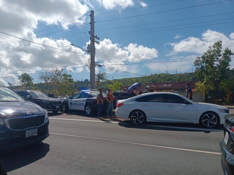 Photos taken by The Guam Daily Post at around 10 a.m. showed a GPD patrol car facing north in the southbound lane of Marine Corps Drive in front of the TakeCare FHP Health Center.