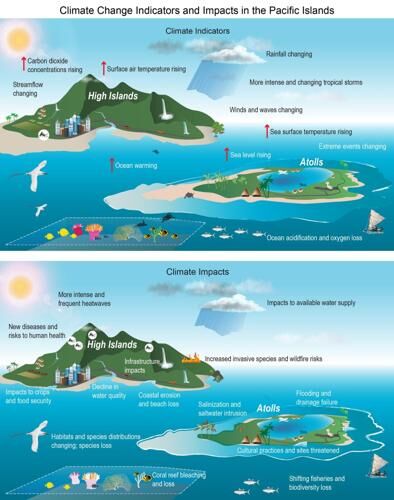An infographic shows the effects of climate change. The University of Guam and the Office of the Governor contributed data to the 2024 U.S. National Climate Assessment.