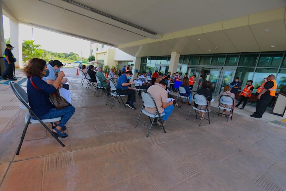 Residents age 60 and older fill out registration forms during mass Covid-19 vaccination efforts at Guam Regional Medical City in January 2021.