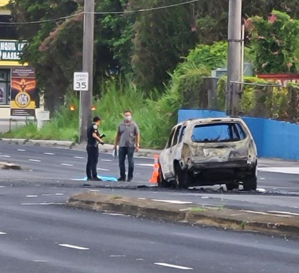 Cellphone video captured the unnamed man’s final moments, as his SUV was seen on fire at the intersection of Army Drive, also known as Route 16, and Harmon Loop Road, also known as Route 27.