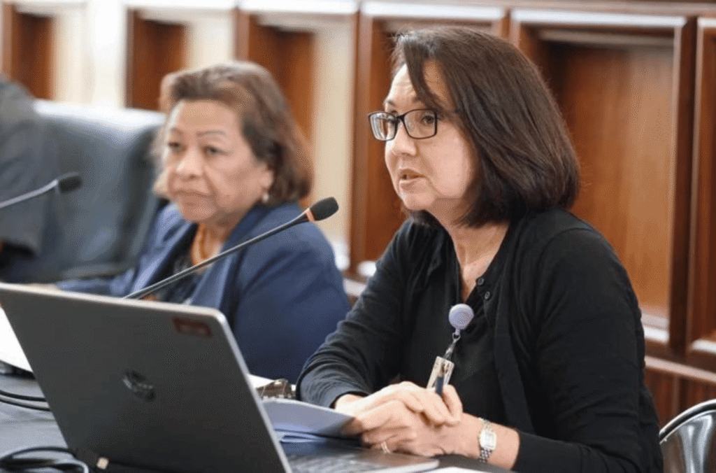 Yukari Hechanova, right, chief financial officer at the Guam Memorial Hospital Authority, answers questions from lawmakers Wednesday, Aug. 16, 2023, during legislative session at the Guam Congress Building in Hagåtña.