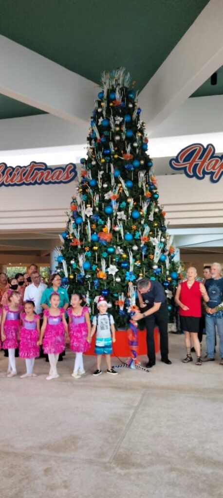 HYATT Regency Saipan on Thursday lighted its 20-foot Christmas tree with blue and orange trimmings.