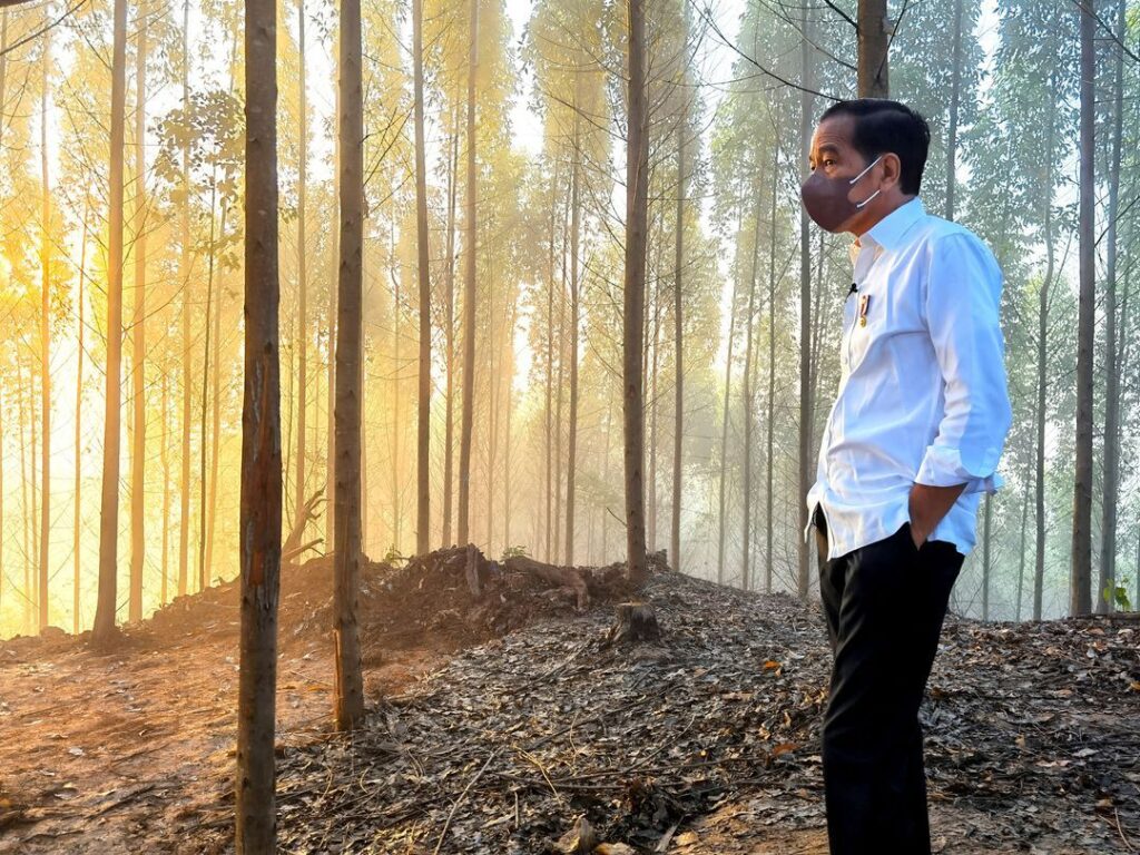 Indonesian President Joko Widodo inspects an area that will be the site of the new capital city, during sunrise in Penajam Paser Utara regency, East Kalimantan province, Indonesia, March 15, 2022.