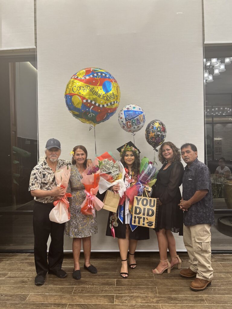 Tianna B. Villagomez and her family members pose for a photo after the Northern Marianas College graduation ceremony on Friday.