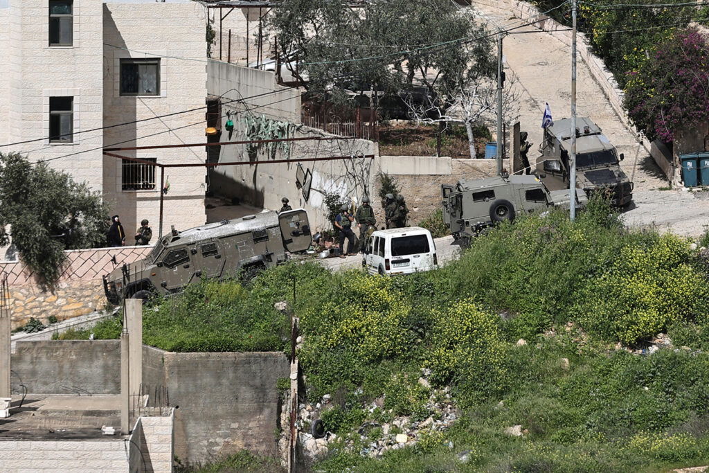 Israeli forces raid the Palestinian village of Dayr Ibzii following a reported shooting attack against Israeli settlers nearby in the occupied West Bank, on March 22, 2024. (Zain Jaafar/AFP via Getty Images/TNS)