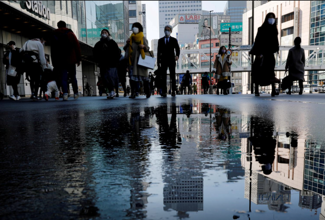 Wearing protective masks amid the coronavirus disease outbreak, pedestrians make their way in Tokyo, Japan on Feb. 2, 2021.