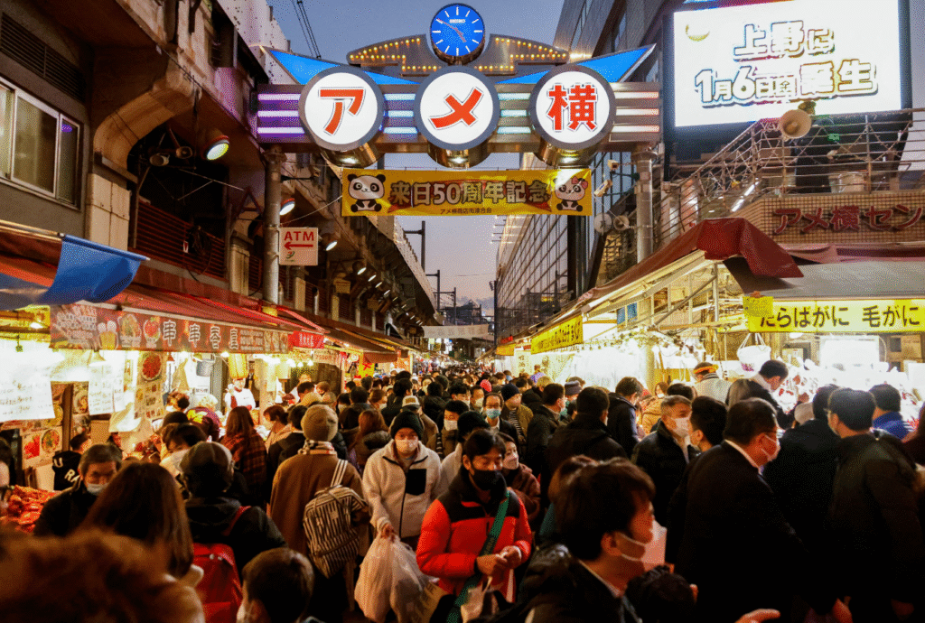 Shoppers crowd at the Ameyoko shopping district, which is Tokyo’s biggest street food market, as they do their last-minute New Year’s shopping in Tokyo, Japan, Dec. 29, 2022.