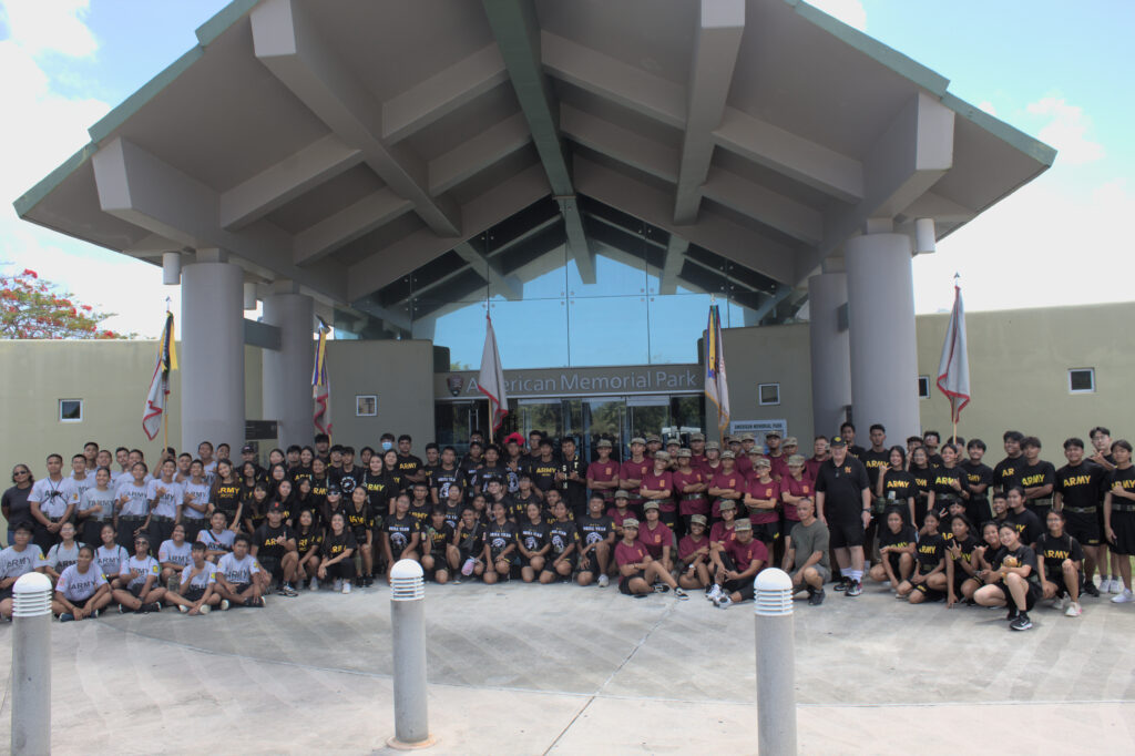 The CNMI’s JROTC cadets pose for a photo at the Visitor Center of American Memorial Park.