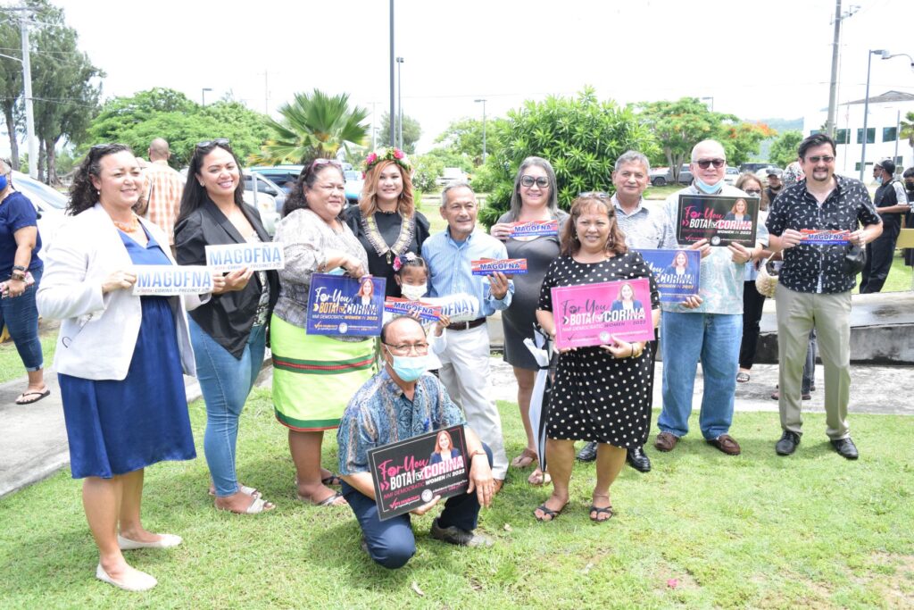 U.S. Congressman Gregorio Kilili Camacho Sablan, second right, joins NMI Democrats and their Precinct 3 House candidate, Corina L. Magofna, center, on Friday at the Commonwealth Election Commission where she filed her candidacy. In the photo are Reps. Leila Staffler, Sheila Babauta, Denita Yangtemai, Vicente Camacho, Celina Babauta, Richard Lizama, Edwin Propst, Sen. Edith Deleon Guerrero and NMI Democratic Party Vice Chairman Daniel O. Quitugua.