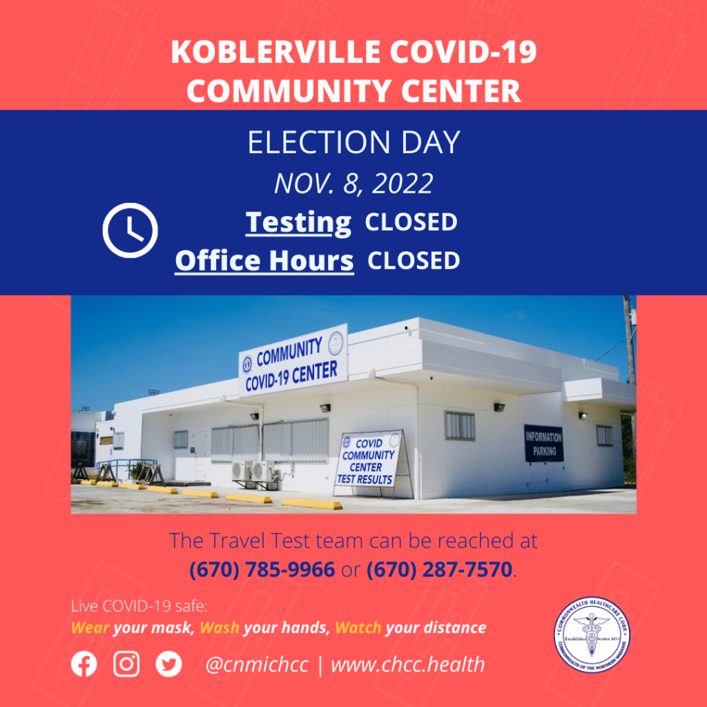 (CHCC) — The Koblerville Covid-19 Community Center or KC3 will be closed on November 8, 2022 for Election Day. The KC3 site will be utilized as an official voting site on that day.