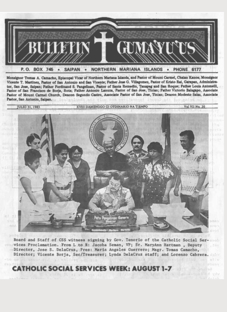 “The incorporation of Northern Marianas Catholic Social Services was on May 5, 1980, by then-Monsignor Tomas A. Camacho and nine community members who understood his vision for implementing a new service of the Church to help the people cope with the inevitable changes confronting their total well-being.”